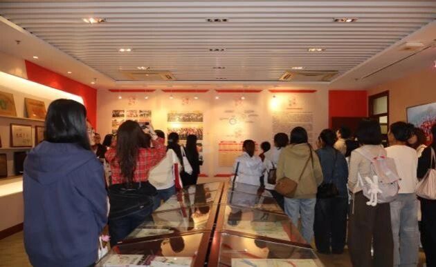 校史馆内,师生们跟随讲解,回顾了北京联合大学特殊教育学院的发展历程。从初创时期的筚路蓝缕,到如今的成果斐然,一代代特教人的辛勤耕耘与不懈追求,深深打动了在场的每一个人。这段砥砺前行的历史,不仅是一部学院成长史,更是一曲尊重差异、赋能生命的赞歌,激励着两院师生在各自领域继续贡献力量。特别引人注目的是馆内循环播放的手语国歌,北京联合大学特殊教育学院的老师向我们介绍“手语国歌是我院完成的一项重大工作,确认并统一了国歌手语标准,也是增进中华民族共同体意识的重要一步!”