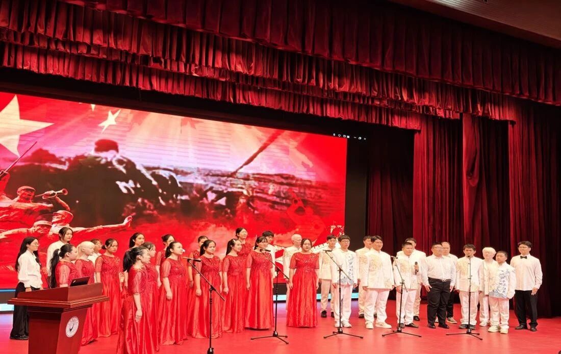 2025级学科教学(语文)专业硕士研究生马瑞泽、王超、董璐,2025级教育学本科生侯黔艳与北京联合大学特殊教育学院学子共同合唱《保卫黄河》,这不仅是一场表演,更是一次灵魂的共振,让“保卫黄河!保卫华北!保卫全中国!”的豪情,在每一颗年轻的心中激荡出最深沉的共鸣,将“民族团结一家亲,特教同行心连心”的主题推向了最高潮。