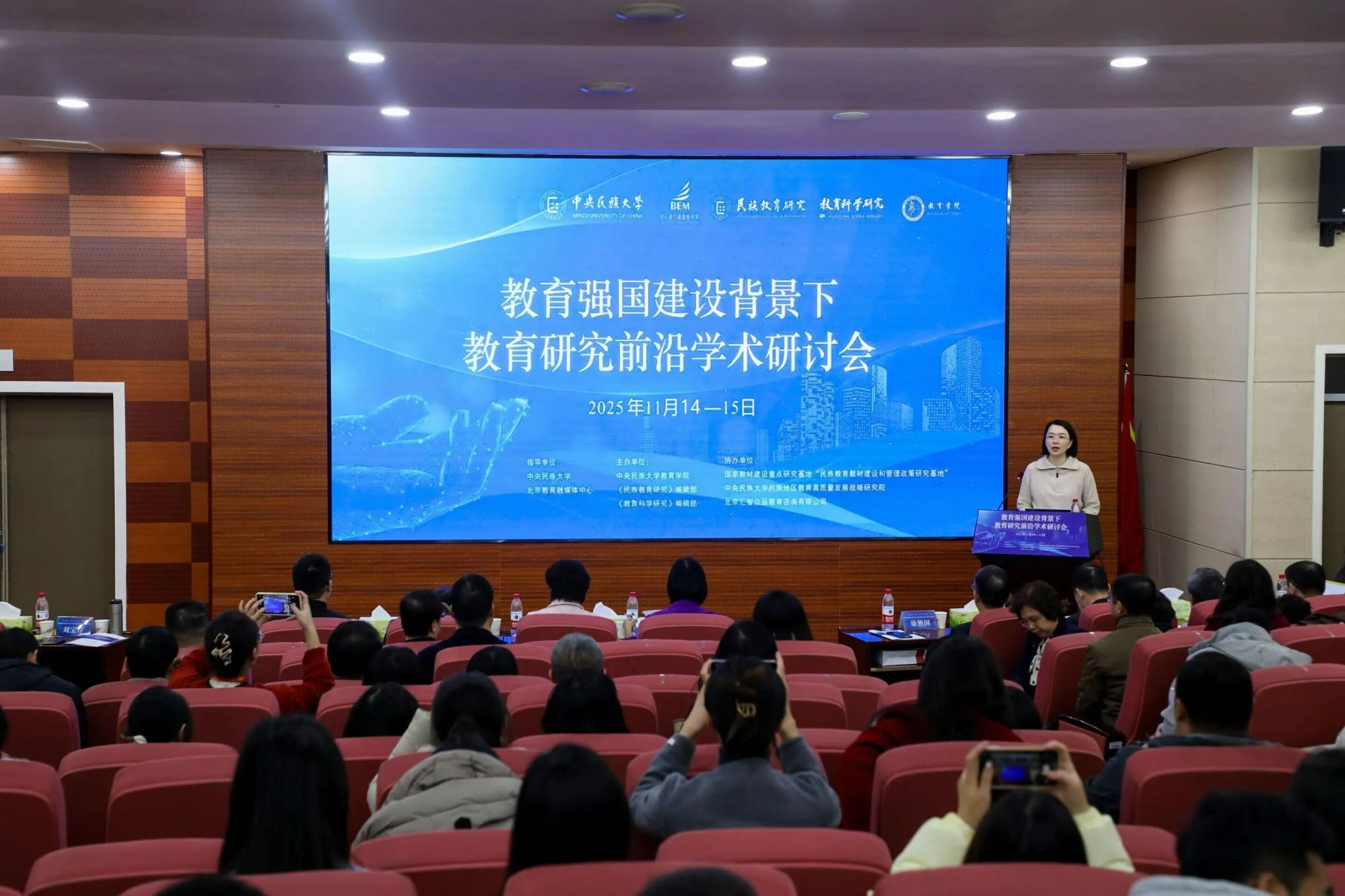 11月15日,“教育强国建设背景下教育研究前沿学术研讨会”在海淀校区举行。会议旨在汇聚全国教育研究领域的智慧力量,共同探讨教育强国建设背景下教育高质量发展面临的关键问题,共商素养导向下课程建设与教学创新和推进民族地区教育现代化的路径方法,为推进我国教育事业高质量发展贡献学术力量。本次研讨会由中央民族大学教育学院、《民族教育研究》编辑部、《教育科学研究》编辑部联合主办。