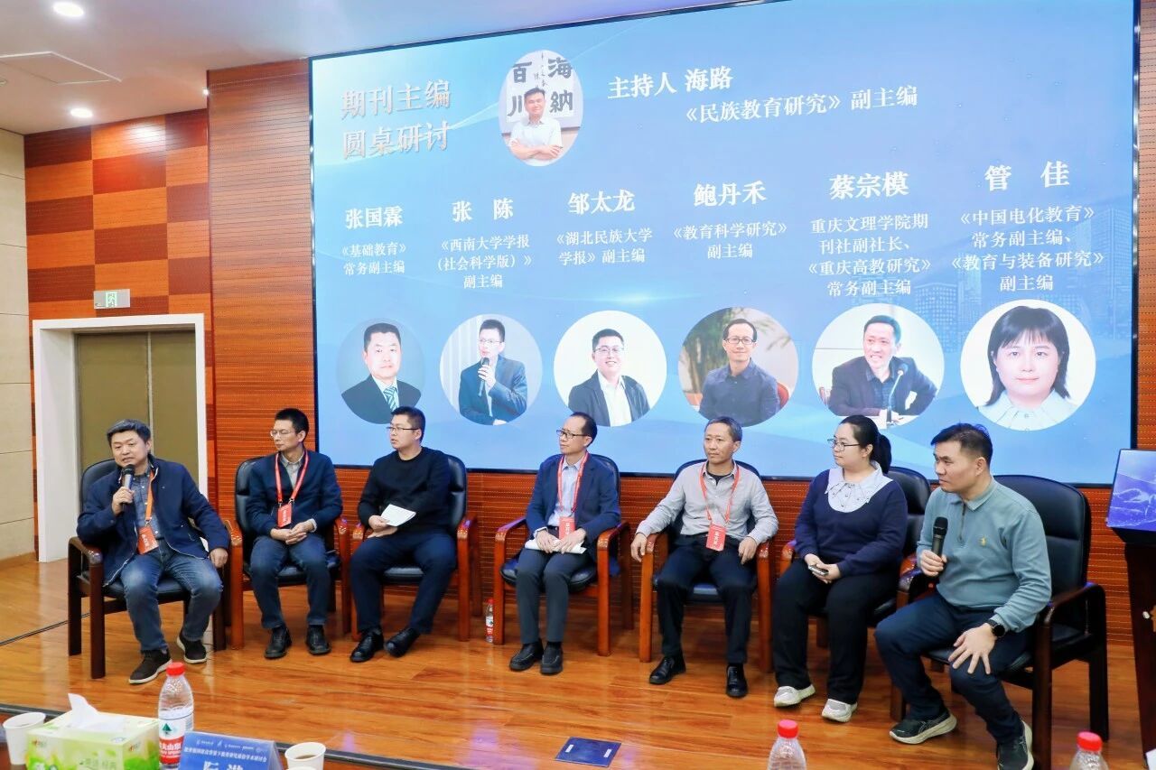 圆桌研讨环节由《民族教育研究》副主编海路主持。《基础教育》常务副主编张国霖、《西南大学学报(社会科学版)》副主编张陈、《湖北民族大学学报》副主编邹太龙、《教育科学研究》副主编鲍丹禾、《重庆高教研究》常务副主编蔡宗模、《中国电化教育》常务副主编管佳共同围绕“教育强国背景下的学术标准再审视”主题,探讨“好研究”的核心特质。